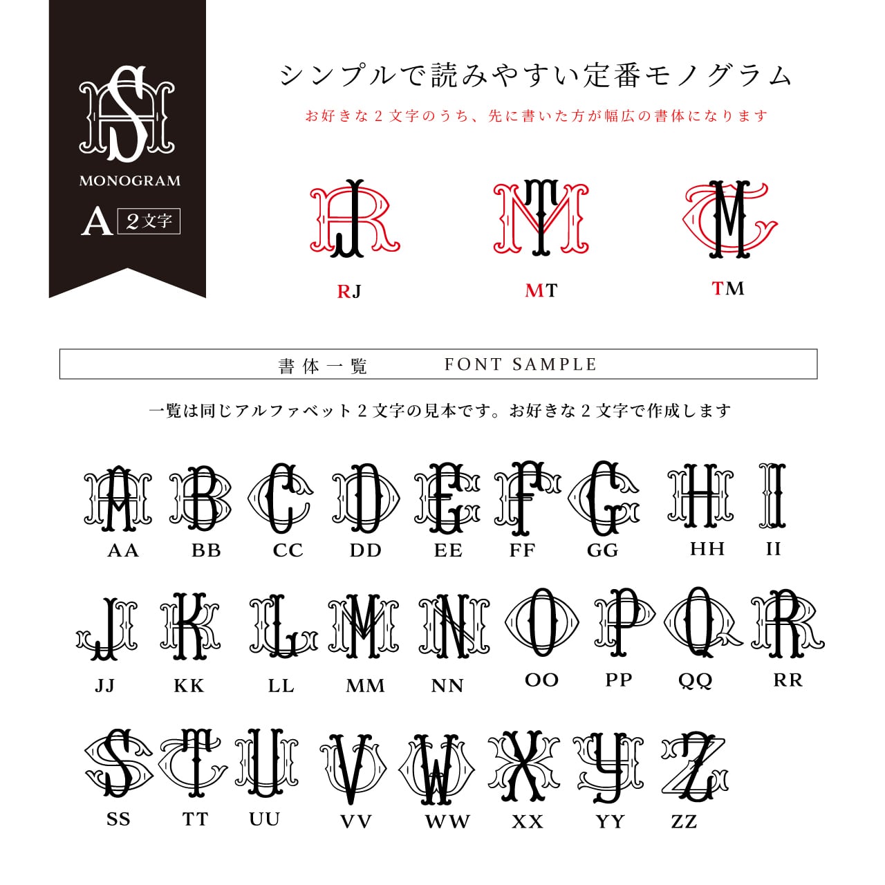 自分だけの2文字のモノグラムデザインがうれしいオーダーデザイン。