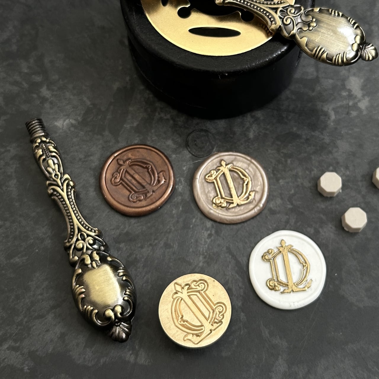 2文字のイニシャルのモノグラムでオーダーできるシーリングWAXスタンプ。