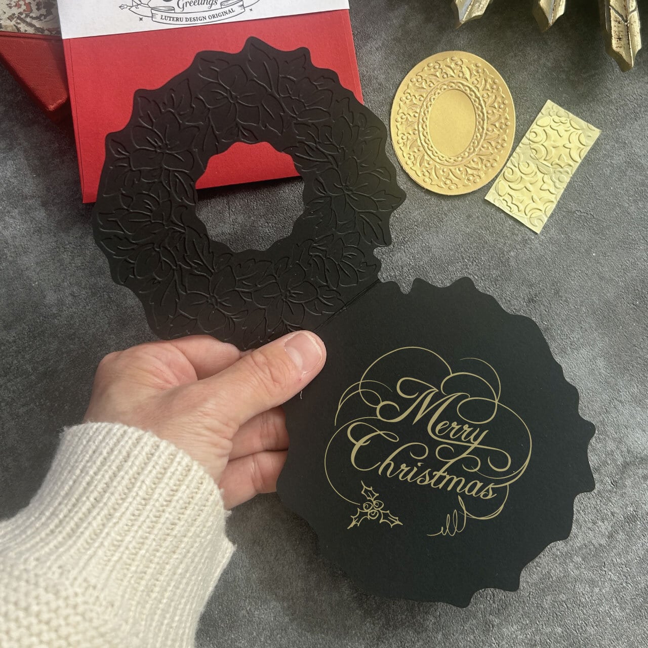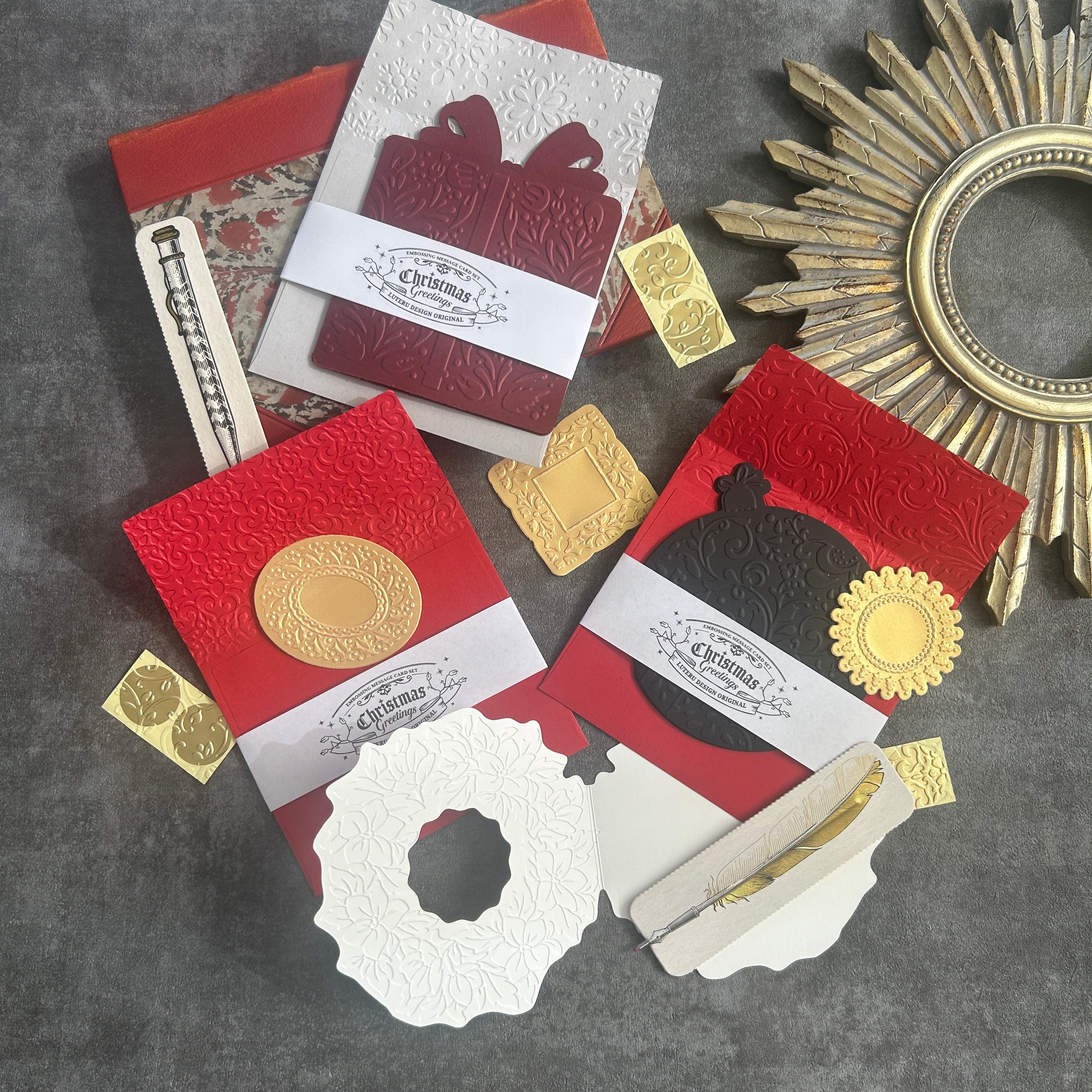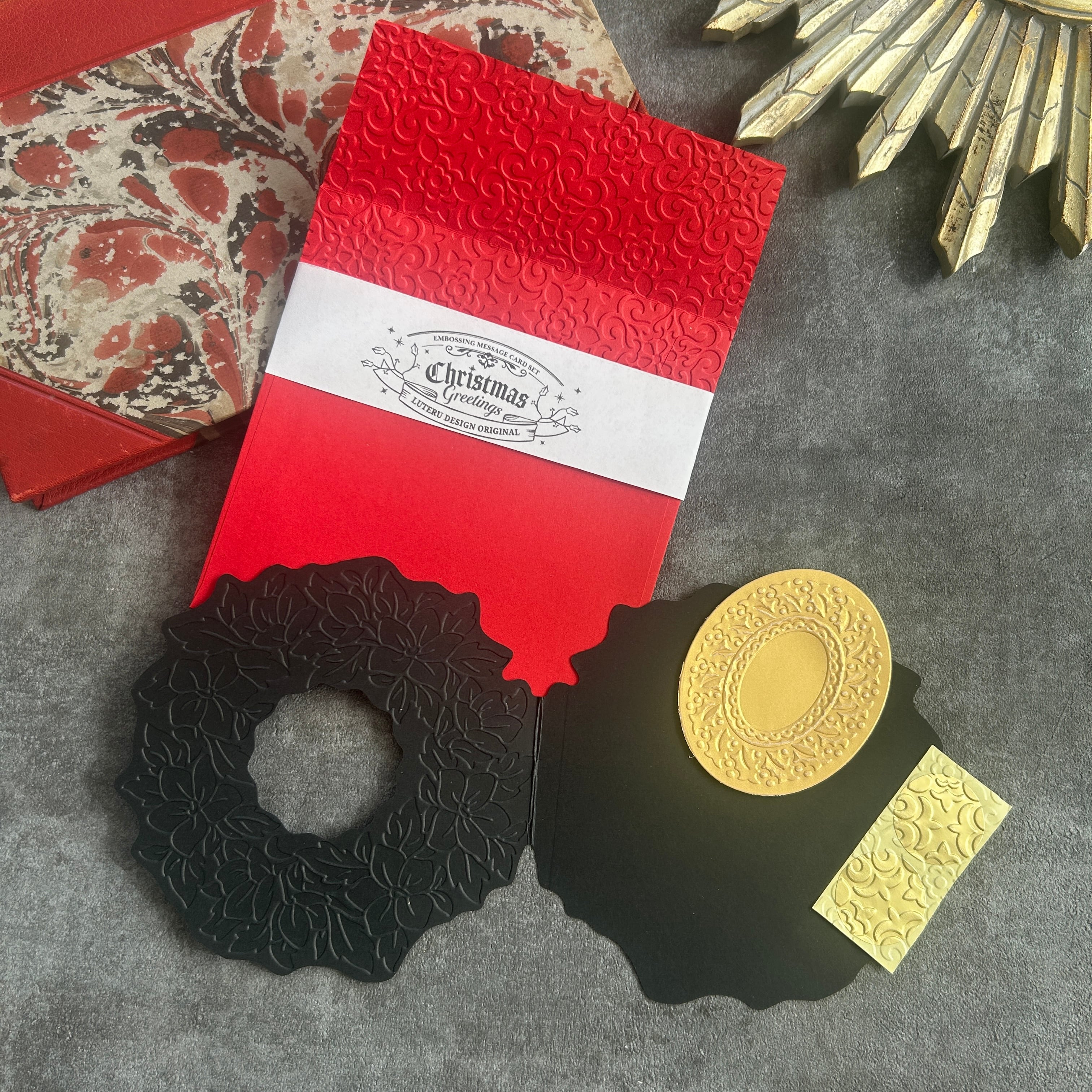 クリスマスにピッタリな型抜き見開きのカードセット。