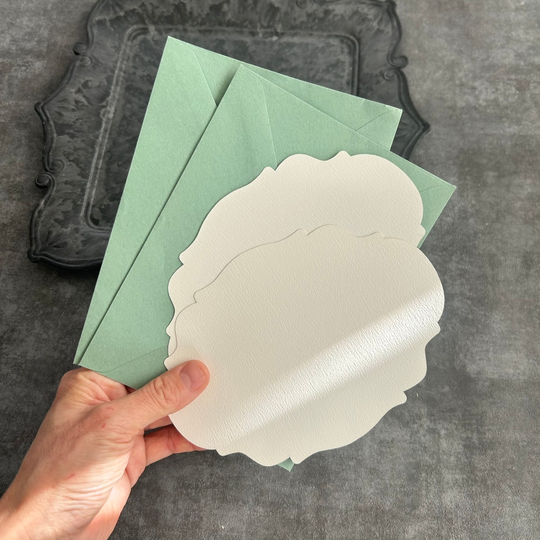 発色がきれいなグリーンとブルーの封筒2枚と、飾りオーバルカード2枚、
