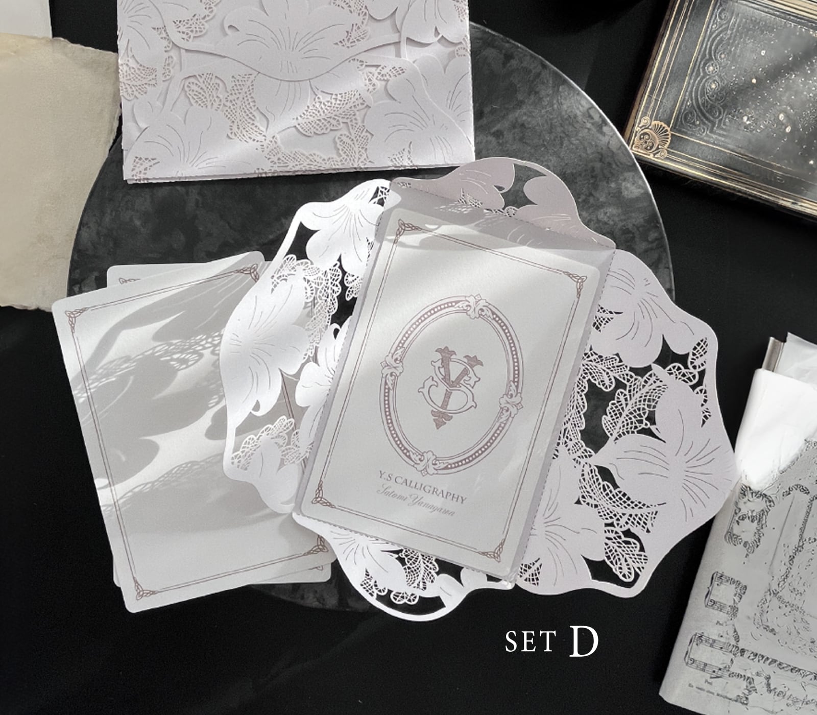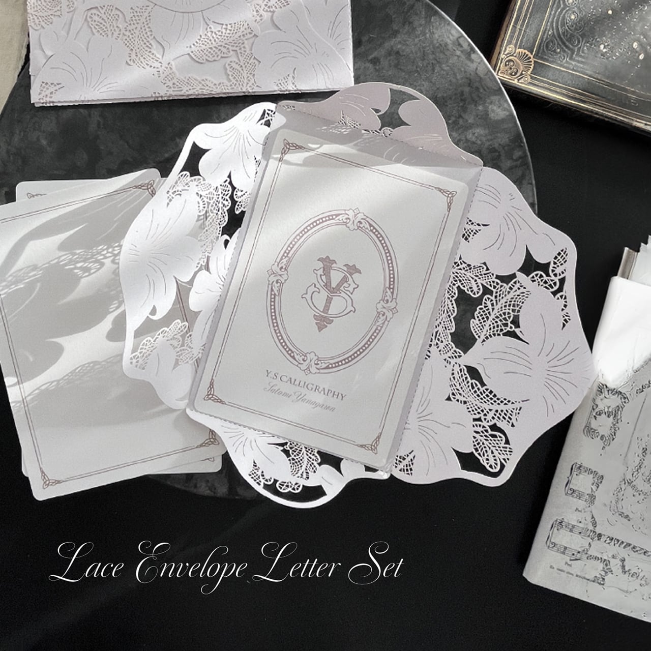 繊細なレースのエンベロープ・レターセット。ウェディング招待状