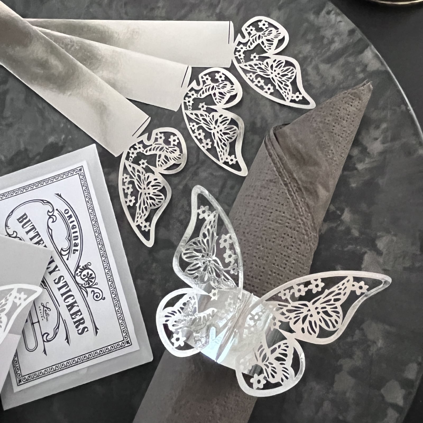 繊細なレースカットの蝶がかわいい、ペーパーナプキンリング