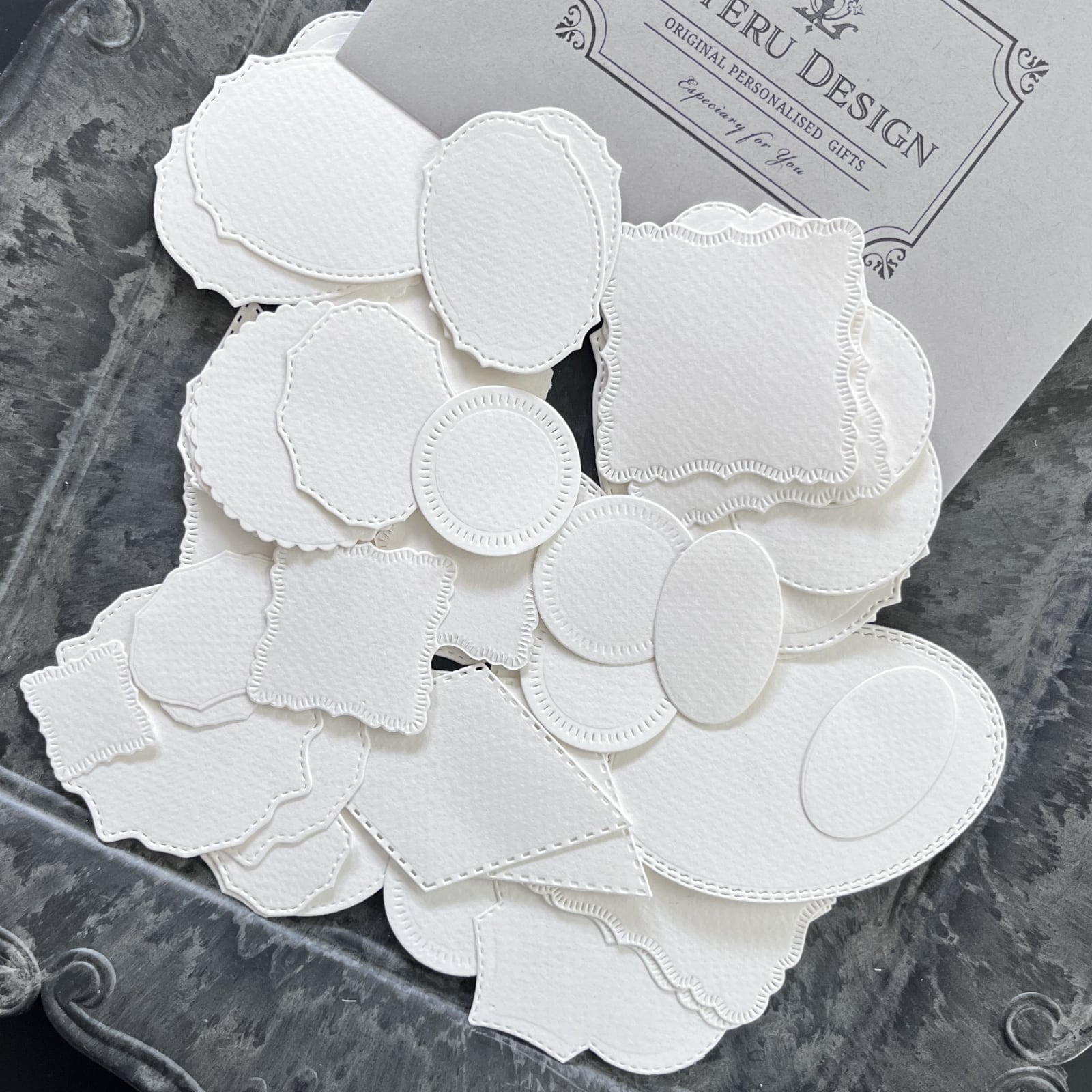 可愛らしい型抜きミニモチーフカードセット。